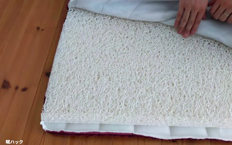 ただ硬めの高反発マットレスとは違い、ガッチリ硬いわけではなくて、ゴムのような弾力があり沈み込みは弱めといった寝心地ですね。